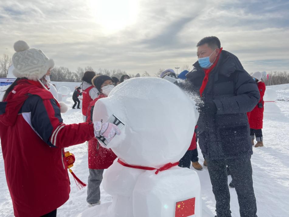 嘉賓們還與留守兒童們暢游雪博會,開啟了冰雪之旅。他們一同欣賞獨具匠心的壯麗雪雕,用心感受這座城市的冰雪文化,手拉手暢玩在零下十幾度的冰天雪地,為留守兒童們留下屬于這個冬天最珍貴的美好回憶。在雕刻指導教練的耐心講解中,共青團省委副書記夏天和留守兒童們共同完成了蘊含著特殊意義的“宇航員”雪雕,它將承載著希望與愛迎接2023年的春暖花開。