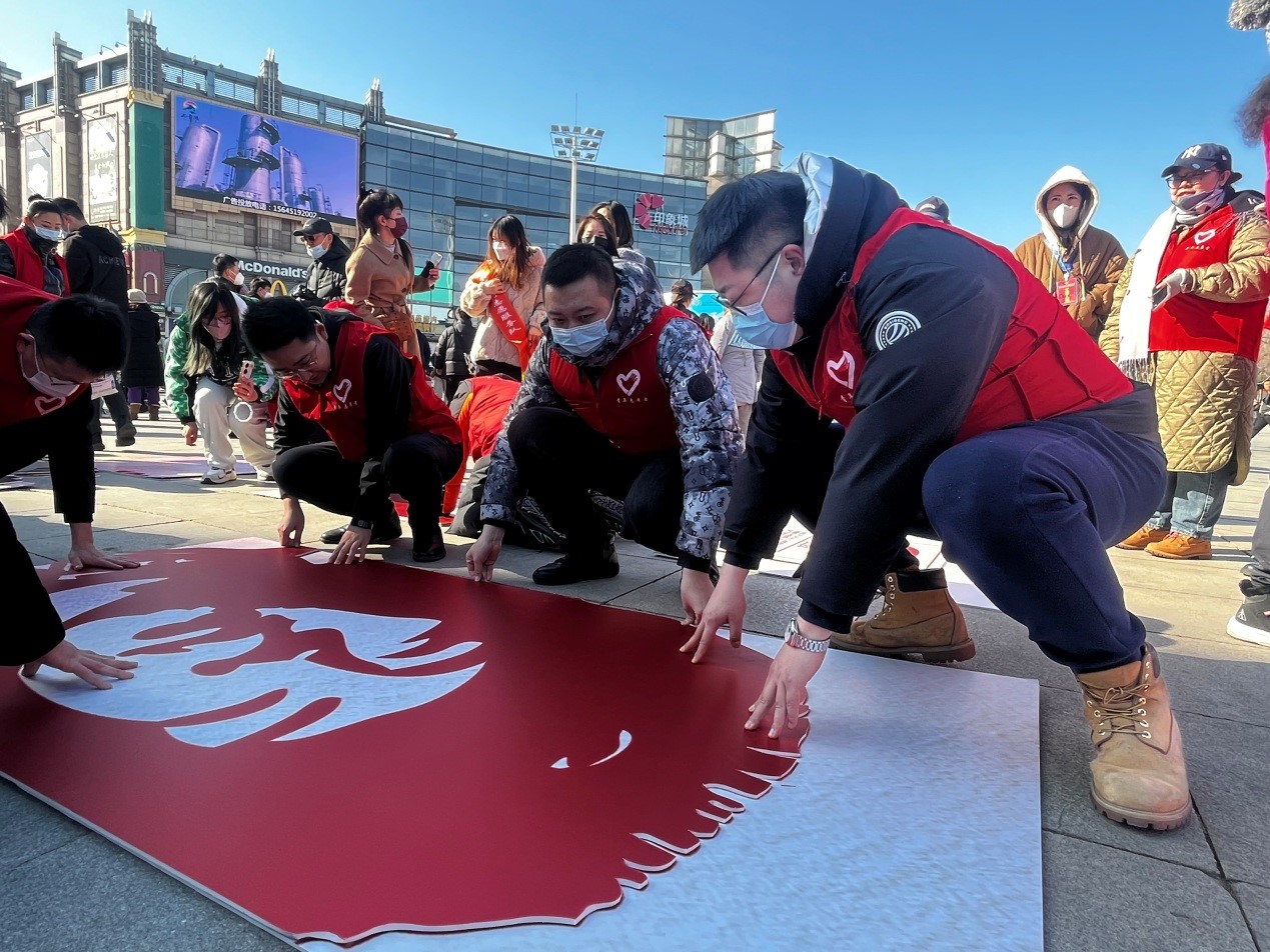 在會場的中間,一幅長3.6米,寬3.6米的學習雷鋒主題拼畫,在黨員干部、青年志愿者和青少年的齊心協(xié)力下呈現(xiàn)出來,展現(xiàn)了志愿者以實際行動向雷鋒同志學習,引導青少年積極向上,努力奮斗的精神風貌。