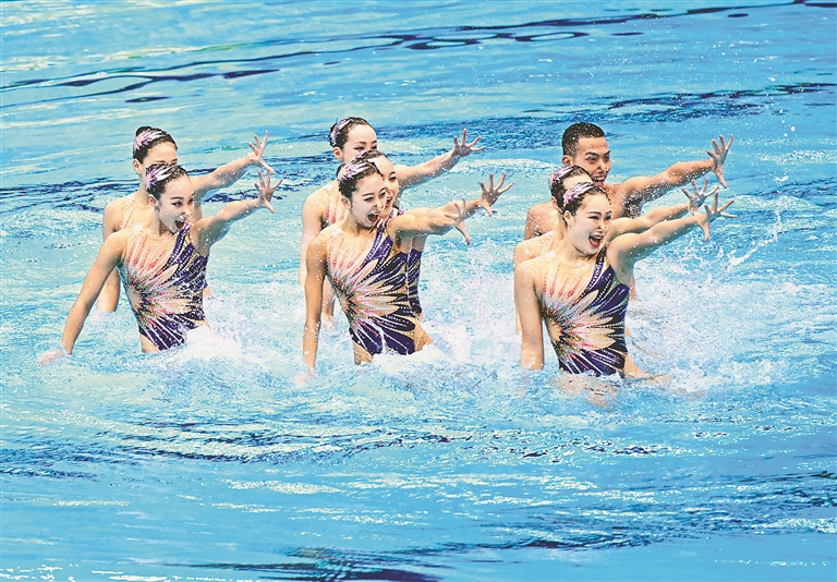 7月17日,在日本福岡舉行的2023年福岡世界游泳錦標(biāo)賽上,花樣游泳集體技巧自選決賽中,中國隊(duì)以238.0033分的成績(jī)獲得冠軍;在跳水女子雙人3米板決賽中,中國組合陳藝文/昌雅妮以341.94分的總成績(jī)奪得冠軍;跳水男子雙人10米臺(tái)決賽中,中國選手楊昊/練俊杰以477.75分的成績(jī)奪得冠軍。