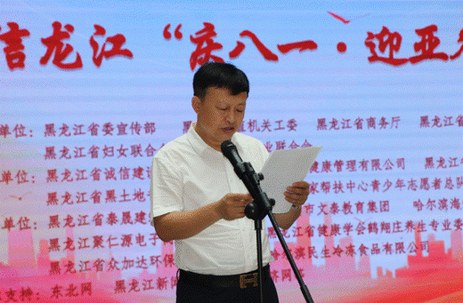 省直機關(guān)工委行業(yè)協(xié)會商會黨建工作部部長、全省性社會組織黨委專職副書記秦曉明致辭。他表示,相信通過這次活動的舉辦,將進(jìn)一步激勵軍民同心,增強情感認(rèn)同,深化同呼吸、共命運、心連心的軍民魚水情,營造擁軍優(yōu)屬、擁政愛民的濃厚社會氛圍。同時,以亞冬會為媒,以書畫展為平臺,充分展示文明尚禮、熱情自信的冰城風(fēng)貌,領(lǐng)略龍江深厚的冰雪運動底蘊。