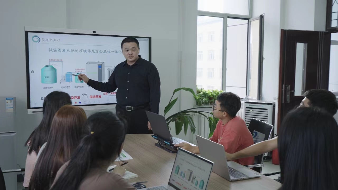 黑龍江職業(yè)學(xué)院《龍之禹30℃低溫蒸發(fā)——企業(yè)液體危險(xiǎn)廢棄物源頭減量化的省錢專家》項(xiàng)目負(fù)責(zé)人郭振航帶領(lǐng)項(xiàng)目組成員研討