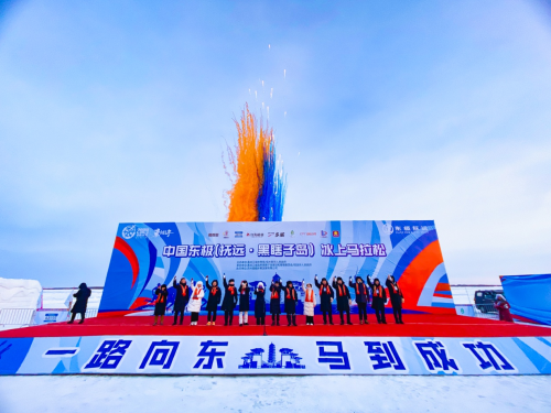 中國(guó)東極(撫遠(yuǎn)·黑瞎子島)冰上馬拉松賽已經(jīng)連續(xù)五屆在撫遠(yuǎn)市舉辦,憑借地域唯一性和極限挑戰(zhàn)性,成為全球五大冰上馬拉松之一,開(kāi)創(chuàng)中國(guó)極限冰雪馬拉松運(yùn)動(dòng)的先河。本屆賽事由黑龍江省體育局、佳木斯市人民政府主辦,省政府黑瞎子島建設(shè)和管理委員會(huì)、撫遠(yuǎn)市人民政府承辦。中國(guó)奧委會(huì)副主席、中田協(xié)名譽(yù)主席段世杰前往比賽開(kāi)幕式鳴槍。賽事設(shè)有全程馬拉松、半程馬拉松、新年歡樂(lè)跑三個(gè)項(xiàng)目。清晨7點(diǎn),撫遠(yuǎn)市的氣溫達(dá)到了零下23.3攝氏度,選手們紛紛帶上防風(fēng)面罩、保暖帽、手套、太陽(yáng)鏡、防滑冰爪等應(yīng)對(duì)極端嚴(yán)寒環(huán)境下的特殊裝備,在全程42.195公里的冰賽道上,徒步穿越冰雪世界,體驗(yàn)當(dāng)?shù)鬲?dú)特冰雪文化和民俗風(fēng)情,品嘗賽道補(bǔ)給站提供的熱氣騰騰的鱘鰉魚鍋、鮮鯽魚湯等地方特色補(bǔ)給品,補(bǔ)充能量抵御嚴(yán)寒。