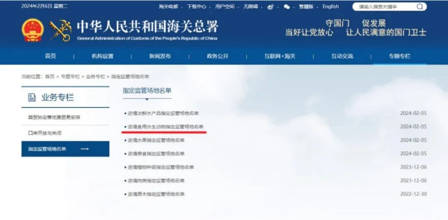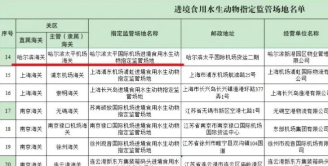 2023年12月14日-15日,海關(guān)總署專家組對哈爾濱太平國際機(jī)場進(jìn)境食用水生動(dòng)物指定監(jiān)管場地進(jìn)行驗(yàn)收。2月5日海關(guān)總署公告正式通過驗(yàn)收。