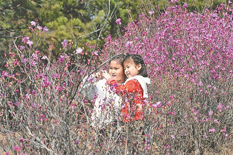 紫云嶺的興安杜鵑陸續(xù)綻放,吸引了大量游客來(lái)此賞花游玩。