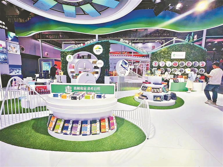 在黑龍江展館內(nèi),設(shè)置了省級(jí)區(qū)域公用品牌黑土優(yōu)品、九珍十八品展區(qū)及龍江森工集團(tuán)森林食品展區(qū),琳瑯滿目的綠色食品彰顯了龍江的地大物博以及做好祖國糧食安全“壓艙石”、打造踐行大食物觀先行地的底氣與實(shí)力。