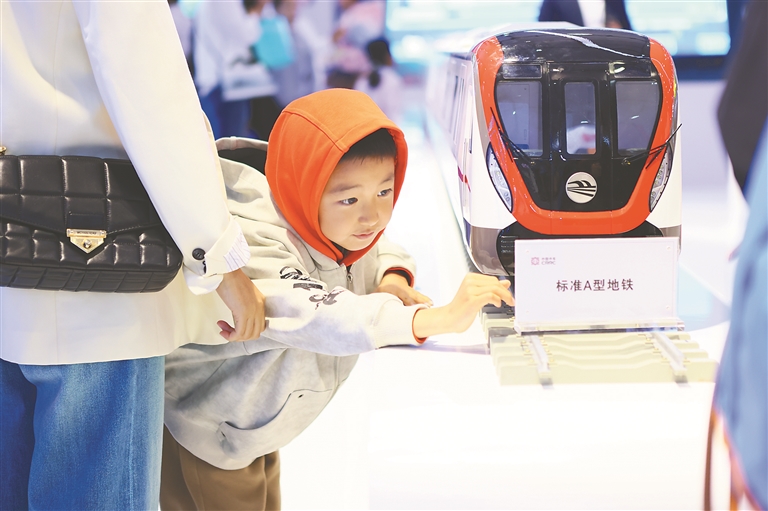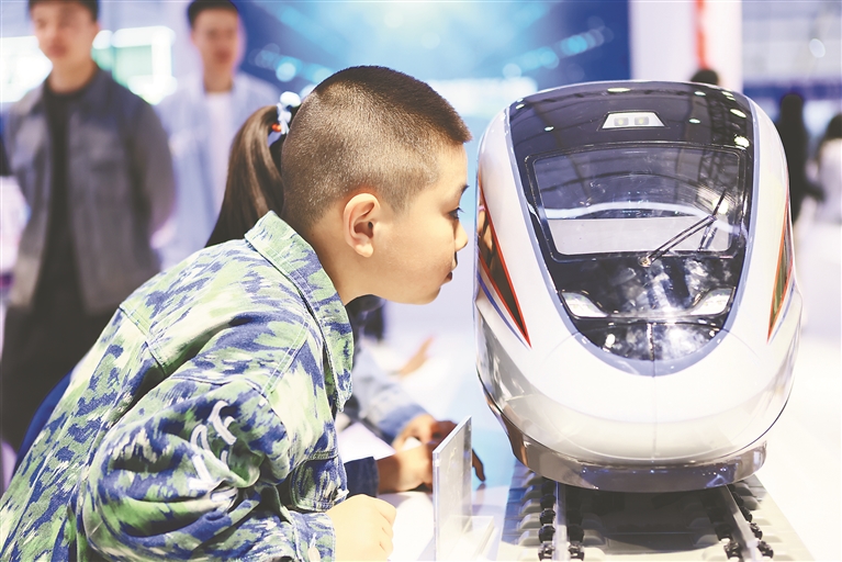 第三十三屆哈洽會成為了孩子們長見識的窗口。在中國中車的展臺前,孩子們的目光被一組組精美的列車模型所吸引。“我從來沒有見過這么多不同種類的列車模型”“我最喜歡的是和諧號,它看起來科技感十足?!蹦芡瑫r看到動車、和諧號還有地鐵并排擺在一起,孩子們興奮不已。