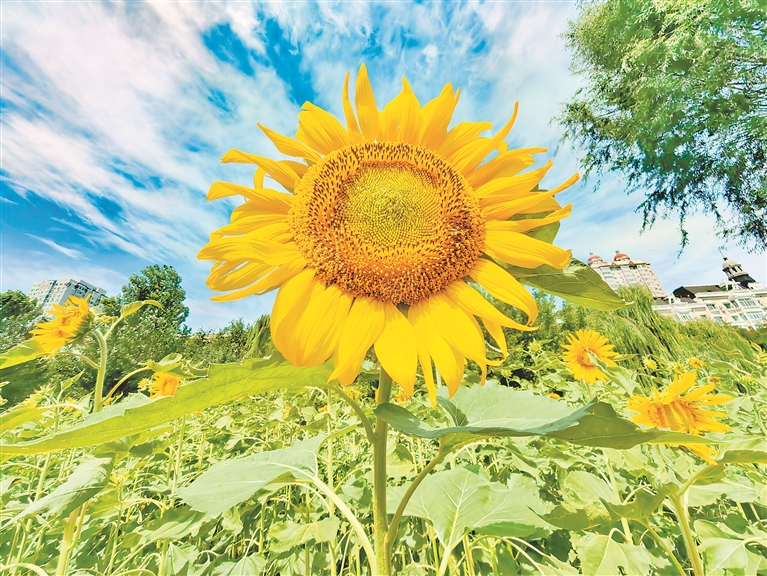8月14日,哈爾濱市兒童公園內(nèi),美麗的向日葵花迎著陽光陸續(xù)綻放。