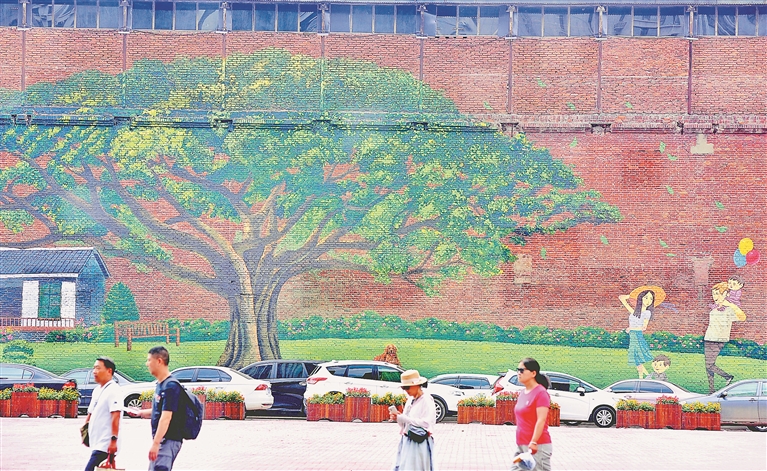 道外區(qū)火車頭街附近,一棟7層樓的外墻上繪制了滑雪運(yùn)動(dòng)的場(chǎng)景,吸引許多路人觀看;北馬路附近,一棟老樓的紅磚外墻也進(jìn)行了彩繪,巨大的圖畫為當(dāng)?shù)卦鎏砹艘坏烂谰啊?/span>本報(bào)記者 蘇強(qiáng)攝