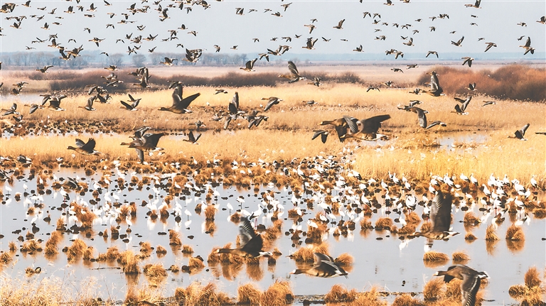 本報(bào)訊(馬淑芬 記者潘宏宇)6日一早,剛下過第一場(chǎng)雪的寶清縣,數(shù)千只東方白鸛在此“集結(jié)”,飛翔在湛藍(lán)的天空和白雪覆蓋的大地之上,勾勒出一幅美麗的圖景,為冬日的寶清增添了一抹別樣的生機(jī)與活力。