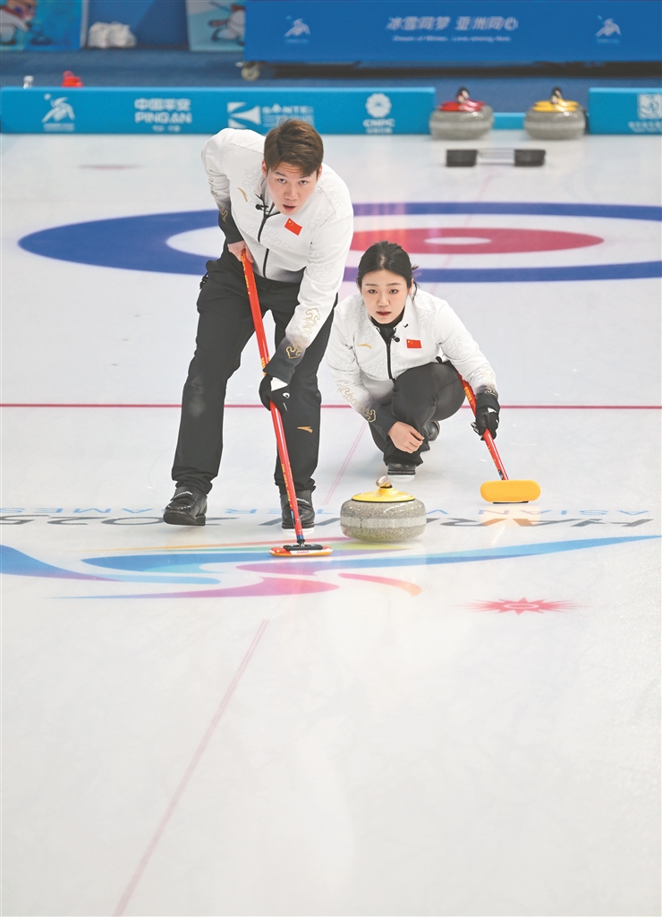 本報6日訊(記者王志強)6日,在冰壺混雙循環(huán)賽最后一輪比賽中,中國隊王智宇/韓雨組合以10比1大比分戰(zhàn)勝卡塔爾隊,以戰(zhàn)績排名小組第一,率先進入半決賽。