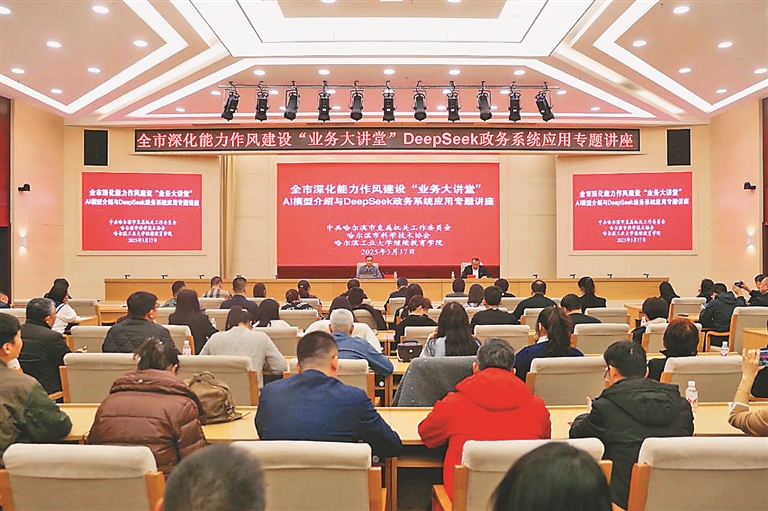 本報(bào)訊(記者 趙一諾)為加快提升機(jī)關(guān)干部數(shù)字素養(yǎng)與智能技術(shù)應(yīng)用能力,助力政務(wù)工作智能化轉(zhuǎn)型升級(jí),近日,哈爾濱市直機(jī)關(guān)工委、哈爾濱市科協(xié)、哈爾濱工業(yè)大學(xué)繼續(xù)教育學(xué)院聯(lián)合舉辦哈爾濱市深化能力作風(fēng)建設(shè)“業(yè)務(wù)大講堂”——AI模型介紹與DeepSeek政務(wù)系統(tǒng)應(yīng)用專(zhuān)題講座。哈爾濱市直機(jī)關(guān)和部分區(qū)縣共200余名機(jī)關(guān)干部參加學(xué)習(xí)。