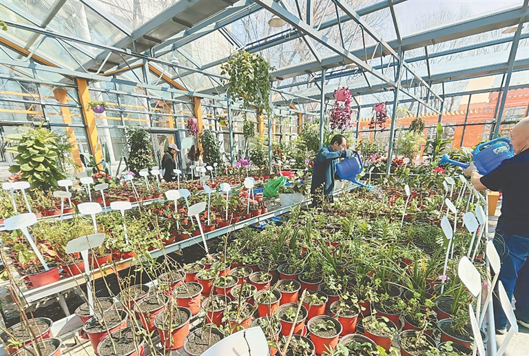 3月31日,黑龍江中醫(yī)藥大學(xué)校園內(nèi),眾多市民在寬敞明亮的溫室里參觀。