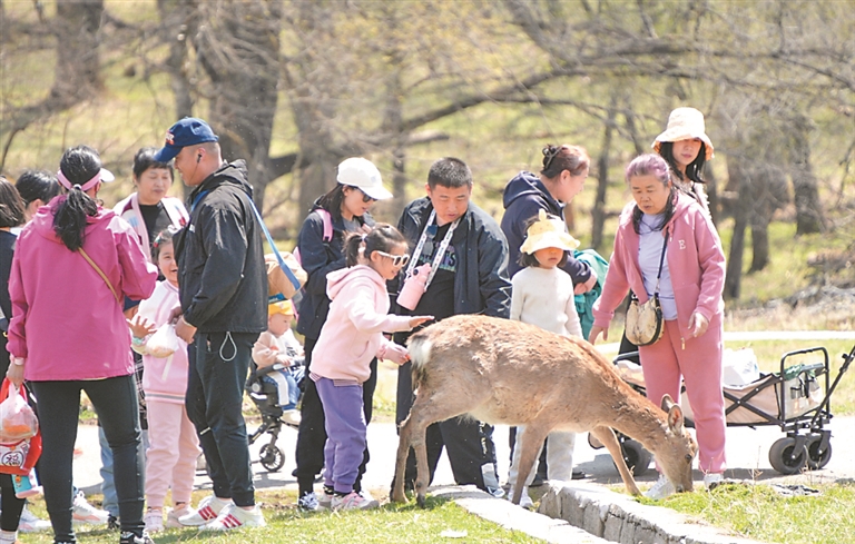 “五一”假期首日,細(xì)雨如絲,卻沒能影響游客們出行的熱情。森工平山皇家鹿苑景區(qū)內(nèi),人頭攢動,游客們的興致在微雨中愈發(fā)高漲。