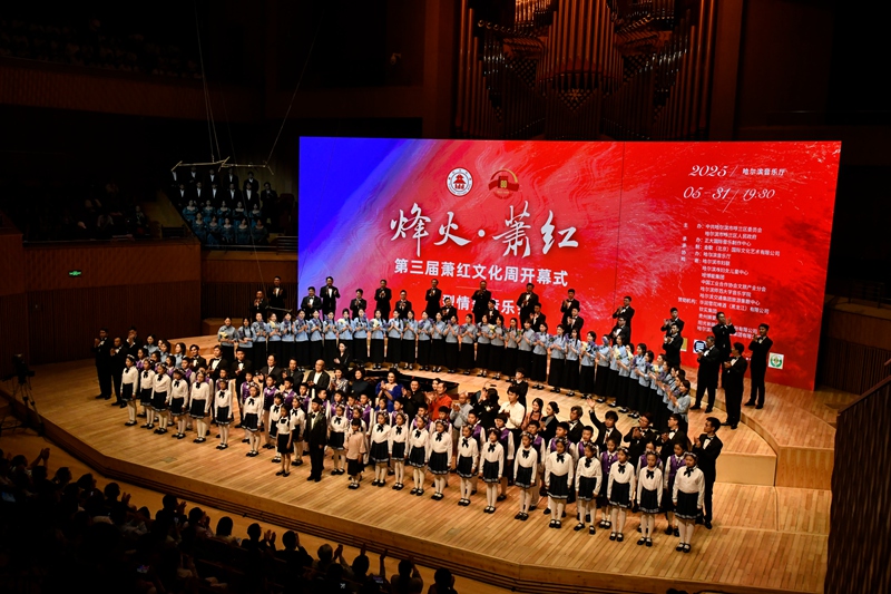 “蕭紅已成為黑土地的精神路標!蕭紅作品中對人民的悲憫、對命運的抗爭、對家國的摯愛,恰是東北文化與中華民族精神的堅韌內核!”由著名主持人敬一丹擔任誦講人,開幕式演出以“情景音樂會”為創(chuàng)新形式,分《序曲》《松花江上》《抗戰(zhàn)的烽火》《文脈永續(xù)》四大篇章展開。音樂會在《呼蘭河邊的小姑娘》合唱中拉開帷幕,童聲與交響樂交織再現(xiàn)蕭紅筆下菜園里的純真目光;情景朗誦《呼蘭河傳》以抒情語調勾勒東北風情長卷,喚醒觀眾對蕭紅故鄉(xiāng)的想象。