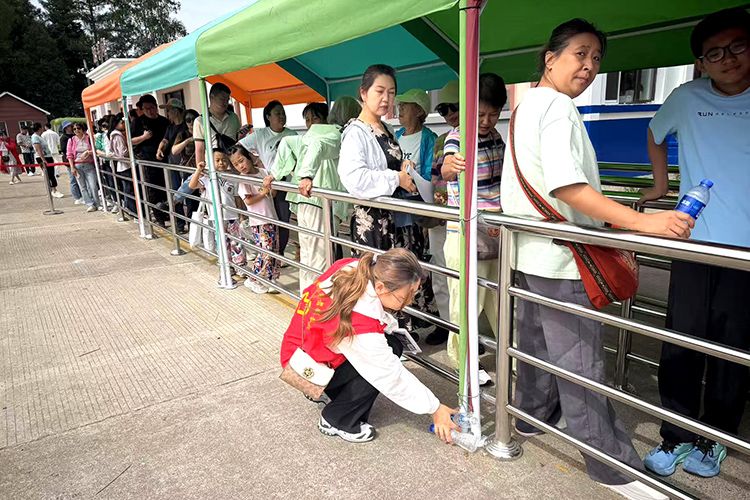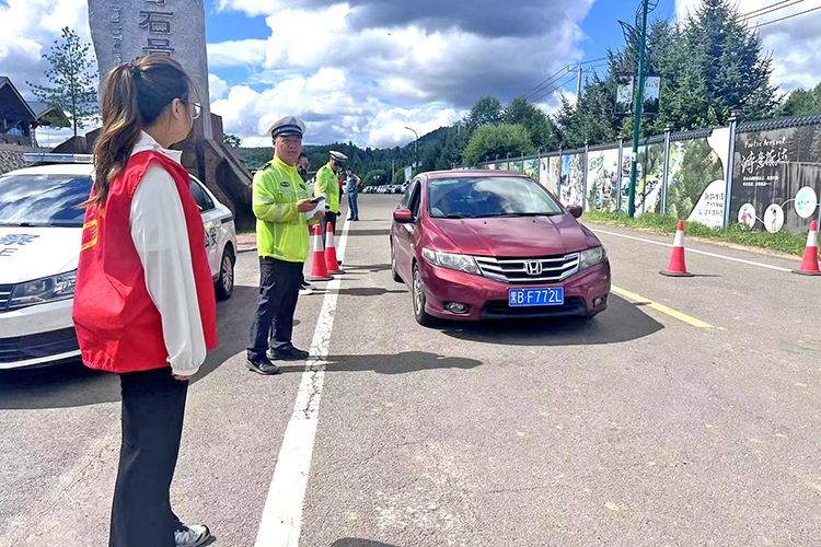 暢通“出行路”:交通協(xié)管繪就平安景。在石林景區(qū)入口,志愿者與交警并肩而立,化身“文明引導(dǎo)員”。他們有序引導(dǎo)游客排隊乘車,耐心解答路線咨詢,及時勸導(dǎo)不文明行為。烈日下堅守的身影,成為景區(qū)一道流動的風(fēng)景線。通過協(xié)同聯(lián)動,有效緩解高峰時段交通壓力,提升了游客出行體驗,也展現(xiàn)了基層治理的溫度與效能。活動累計出動志愿者8人次,服務(wù)時長超400小時,引導(dǎo)游客有序乘車8000余人次,勸導(dǎo)不文明行為20余起,景區(qū)交通秩序明顯改善。