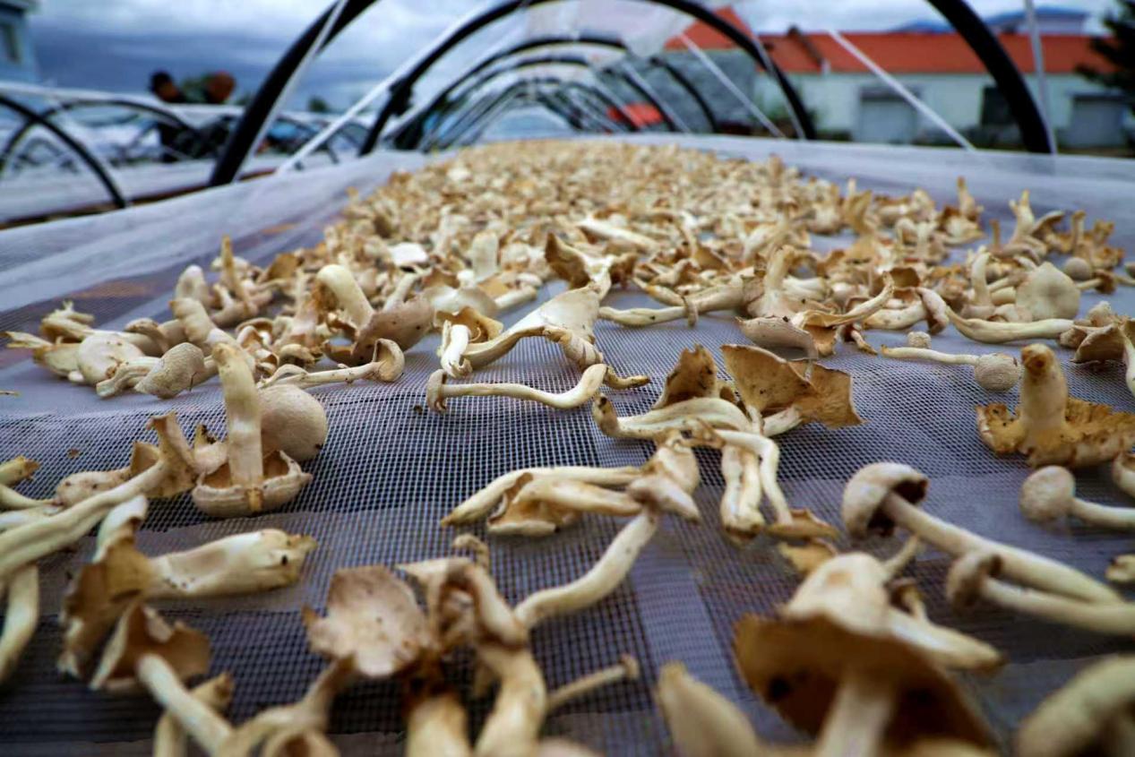 阿木爾林業(yè)局依東林場(chǎng)職工精心管理晾曬的毛尖蘑(王力 攝)