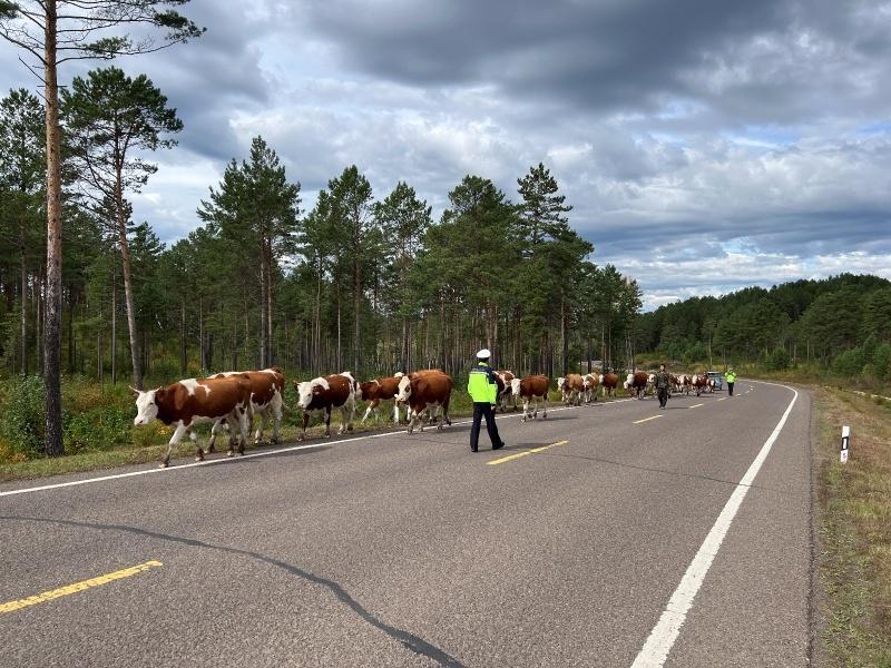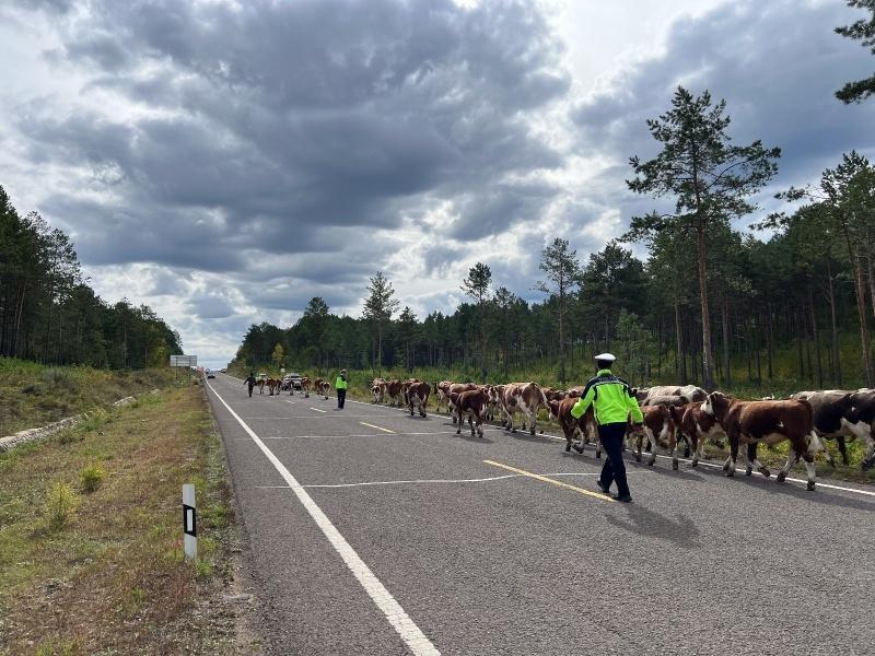 每次牲畜轉(zhuǎn)場大多由一名養(yǎng)殖戶照料,因牛群數(shù)量多、分散廣,養(yǎng)殖戶根本顧不過來,部分牛時不時竄向路中央,過往車輛只能小心翼翼避讓,交通安全隱患重重。針對轉(zhuǎn)場路線長、牲畜數(shù)量多、車輛與畜群混行等實際情況,呼瑪縣公安局交通管理大隊提前謀劃、精心部署。轉(zhuǎn)場當日,天還未亮,民輔警們就已在集合點等候。他們與養(yǎng)殖戶一起檢查牛群狀態(tài)、整理物資,隨后便踏上了轉(zhuǎn)場之路。一路上,民輔警們分散在牛群周圍,有的在前方引導,及時疏導交通,指揮過往車輛減速慢行,確保車輛與畜群有序通行;有的在后方壓陣,防止牛群掉隊;有的在兩側(cè)警戒,用溫和的呼喊聲和手勢指揮牛群前進方向。