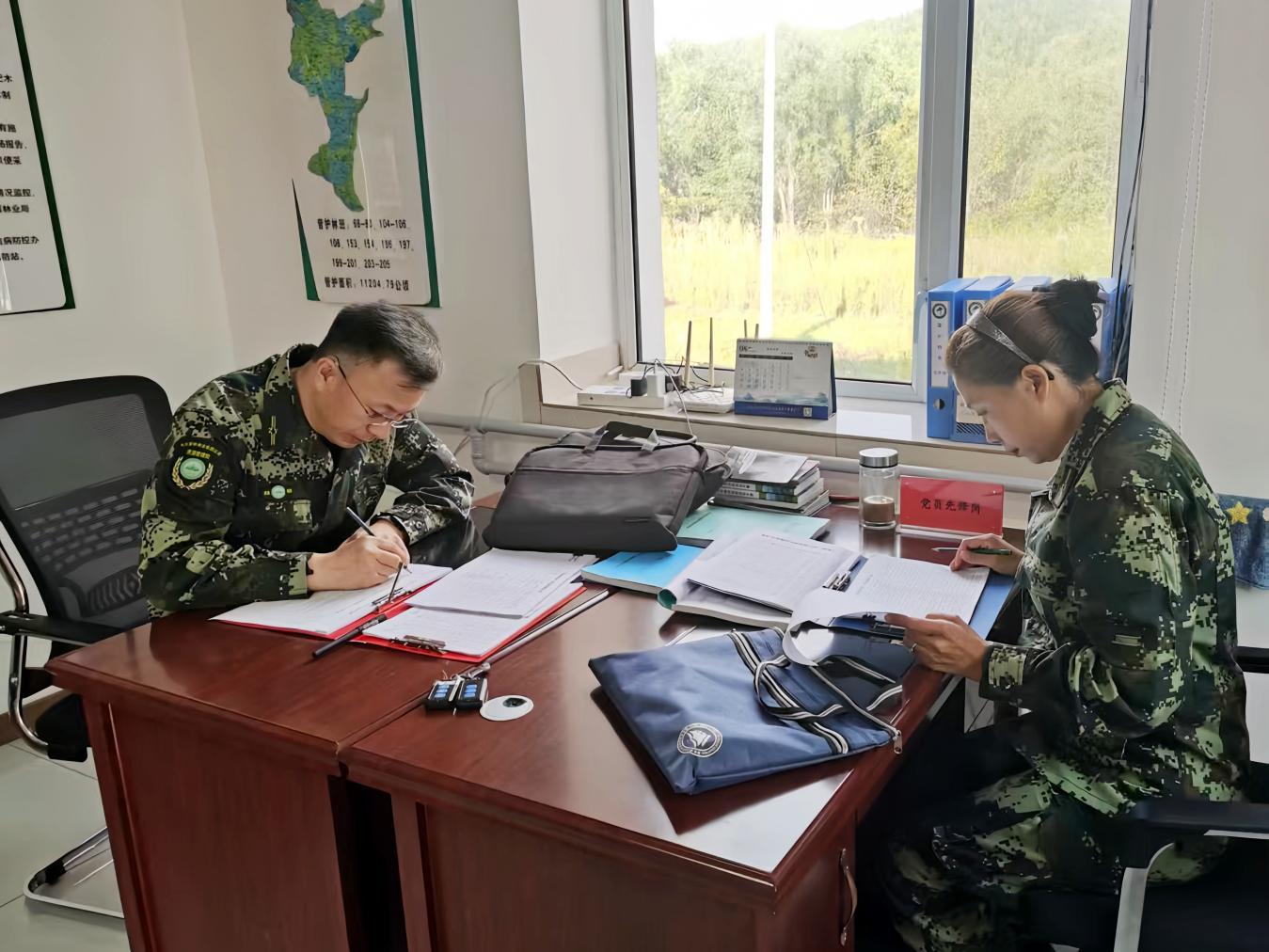 集團評審組檢查管護站的內業(yè)建設(張凱強 攝)