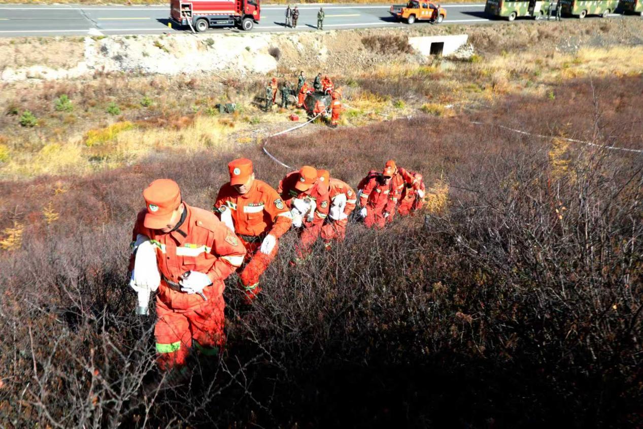 阿木爾林業(yè)局“以水滅火”中隊參加綜合演練,隊員攜帶水帶向“滅火點(diǎn)”挺進(jìn)(王力 攝)