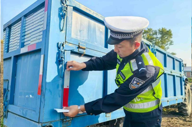 黑龍江經(jīng)濟(jì)網(wǎng)訊(李寶 劉昌龍 記者梁新立)9月23日,五大連池市公安局反恐與交巡特警大隊(duì)持續(xù)深化農(nóng)用車“亮尾”行動,以“嚴(yán)管控、廣宣傳”的工作思路,全面加強(qiáng)秋收期間農(nóng)村道路交通安全管理,有效預(yù)防和減少因農(nóng)用車尾部標(biāo)識不清引發(fā)的夜間交通事故,為群眾秋收時(shí)節(jié)出行安全點(diǎn)亮“警示燈”。
