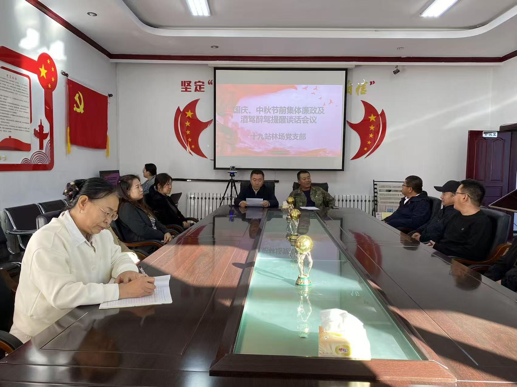 黑龍江經(jīng)濟(jì)網(wǎng)訊(王秀萍)國慶、中秋將至,為鞏固拓展深入貫徹中央八項(xiàng)規(guī)定精神學(xué)習(xí)教育成果,進(jìn)一步增強(qiáng)黨員干部廉潔自律意識(shí)和拒腐防變能力,確保節(jié)儉文明廉潔過節(jié),9月29日,十八站林業(yè)局十九站林場黨支部召開國慶、中秋節(jié)前集體廉政提醒談話會(huì)議,并對林場國慶假期安全生產(chǎn)工作進(jìn)行部署。