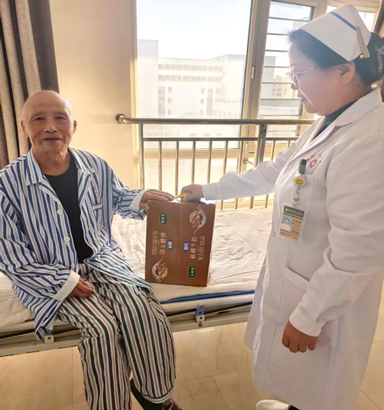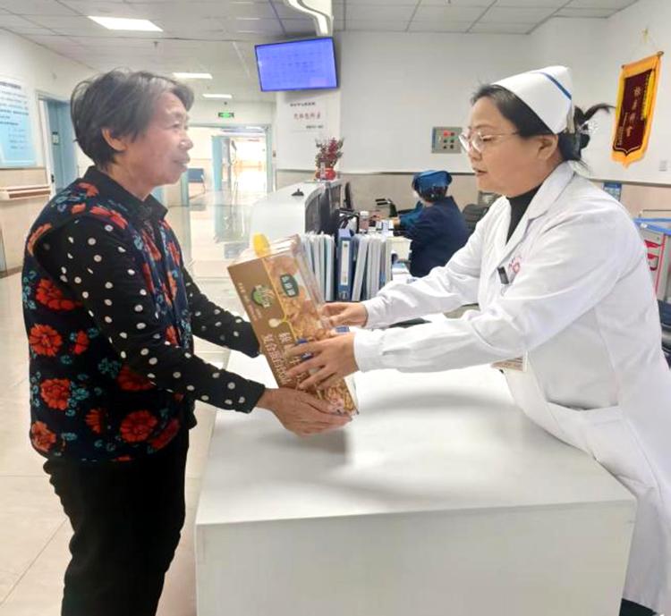 禮品雖小,情意濃重。開展活動(dòng)期間,醫(yī)護(hù)人員們帶著精心準(zhǔn)備的小禮品,走進(jìn)每一位60歲以上老年患者的病房。這些小禮品雖然價(jià)格并不昂貴,但卻飽含著對(duì)患者的深深祝福。柔軟舒適的保暖襪,為患者在漸冷的霜降時(shí)節(jié)增添一份溫暖;營(yíng)養(yǎng)豐富的滋補(bǔ)品,助力患者增強(qiáng)身體抵抗力;寓意吉祥的平安符,寄托著對(duì)患者早日康復(fù)的美好期許。當(dāng)醫(yī)護(hù)人員將一份份小禮品送到患者手中時(shí),患者們的臉上都洋溢著驚喜與感動(dòng)的笑容,紛紛對(duì)科室的貼心關(guān)懷表示感謝。患者劉阿姨激動(dòng)地說:“在這個(gè)特殊的節(jié)日里,收到你們送的禮物,心里特別溫暖”。