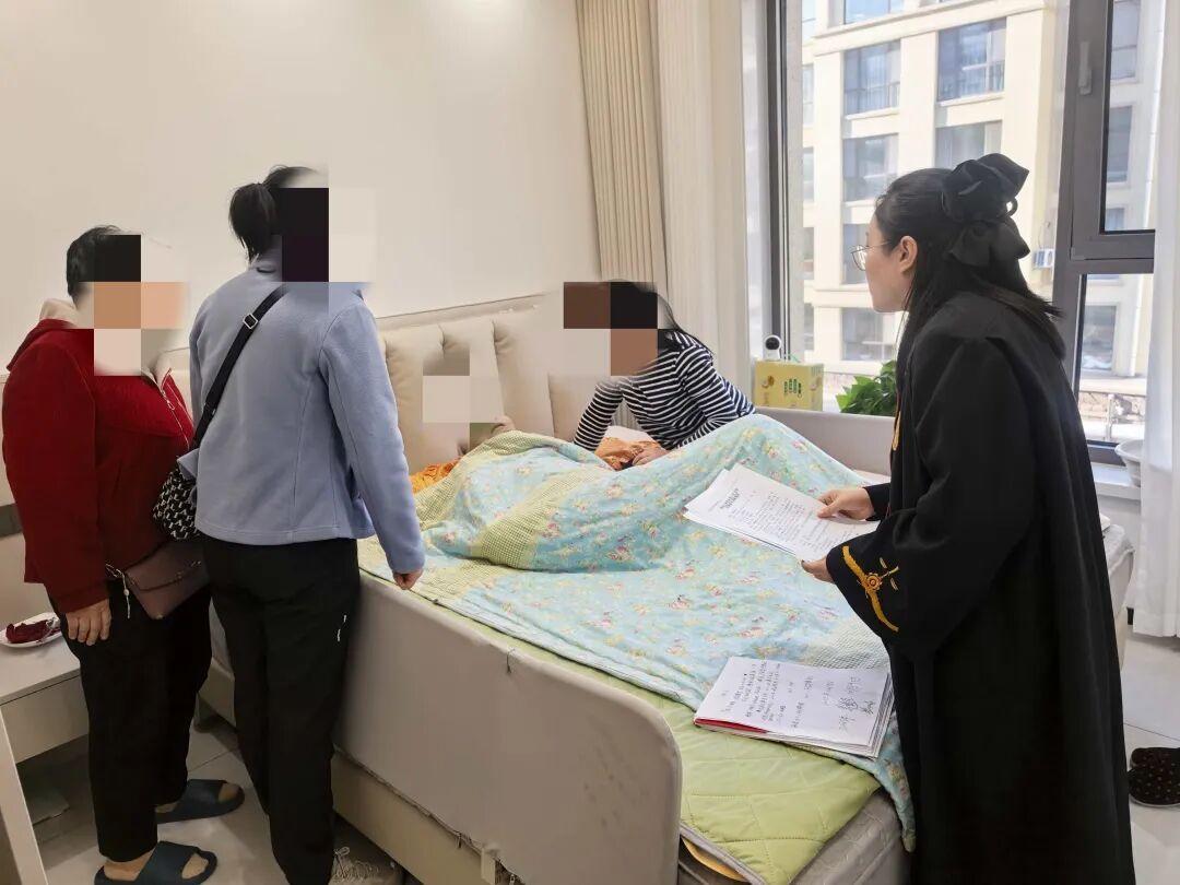 開庭當天,干警們一進老人家門,就忙著搭建“臨時法庭”;法官沒有用急促的問話推進流程,反而把語速放慢了兩倍,拉著老人的手耐心傾聽——這份“把當事人當家人”的細致,漸漸融化了老兩口心中的芥蒂,讓他們愿意敞開心扉溝通。調解結束后,法官特意蹲在張爺爺?shù)牟〈策叾冢骸昂罄m(xù)的法律文書我們會直接送過來,您和阿姨要是有任何疑問,隨時給我們打電話,不用來回跑法院?!甭牭竭@話,張爺爺看著干警們收拾東西的背影,渾濁的眼睛里忽然泛起了微光,他輕輕吐出兩個字:“謝謝”。這簡單的兩個字,藏著老人及家人對“司法不缺位”的深深感激,更映出了人民群眾對“司法為民”的熱切期盼。