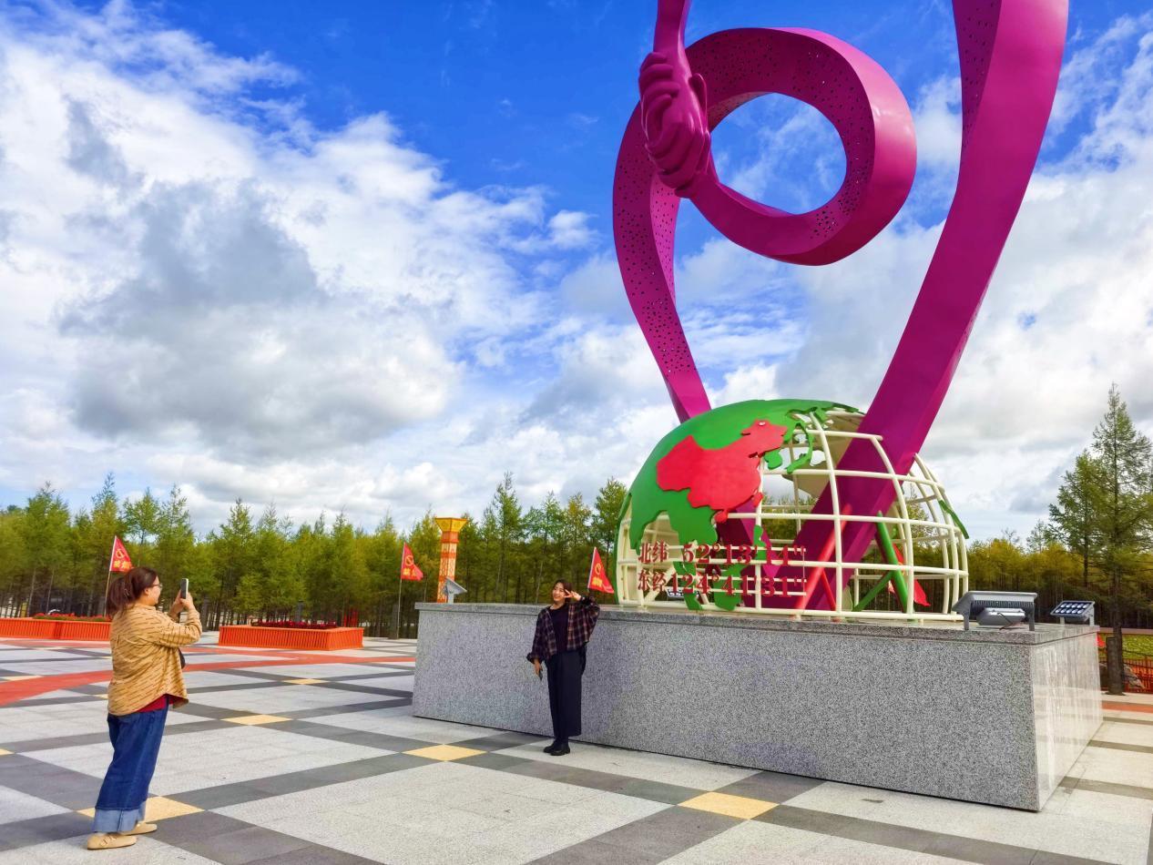 游客在中國愛情坐標點打卡(李輝 攝 )