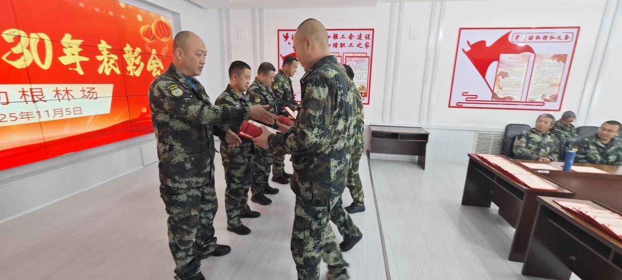 當一本本鐫刻著“光榮在崗30年”的證書、一份份承載著林場深情的紀念品遞到職工們的手中時,全場掌聲雷動。這不是普通的證書與禮物,它鐫刻著30載春秋的堅守,見證著職工們與林區(qū)共生共長的歲月,更承載著林場對他們的由衷感謝與崇高敬意。