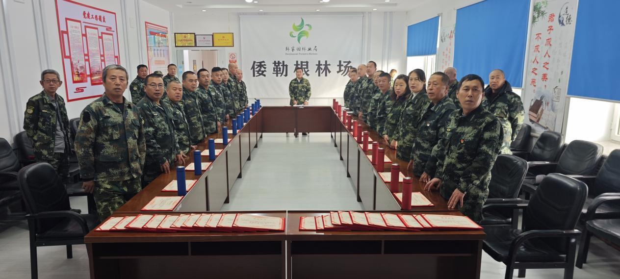 林場班子成員走上臺,與職工們并肩而立,快門按下,定格了這一幀滿是敬意與溫暖的畫面。