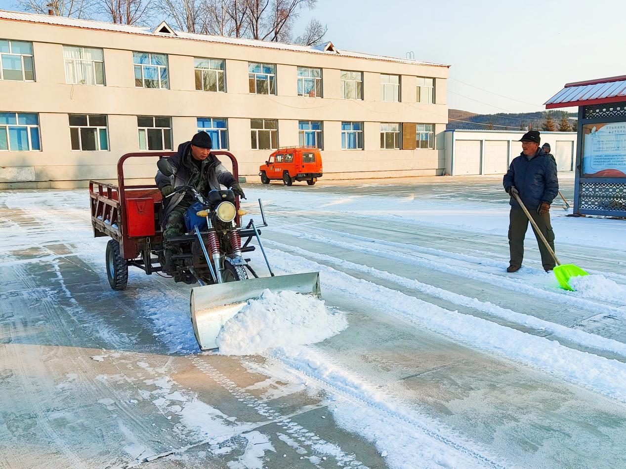 清雪現(xiàn)場(chǎng),干部職工們嚴(yán)格遵循“即下即清、雪停路凈”的原則,不畏凜冽寒風(fēng),迅速投入戰(zhàn)斗。大家分工協(xié)作,形成了“機(jī)械+人工”的高效清雪模式。職工們各展所長(zhǎng),有人駕駛自制清雪車清理積雪,有人用推雪板歸集散雪,還有人手持雪鏟、吹雪機(jī)細(xì)致清理人行道縫隙等邊角區(qū)域。經(jīng)過近3小時(shí)的奮戰(zhàn),林場(chǎng)責(zé)任區(qū)內(nèi)的積雪被清除干凈,露出了整潔的路面和暢通的通道,為職工群眾和過往車輛安全通行清出了一片“平安路”。