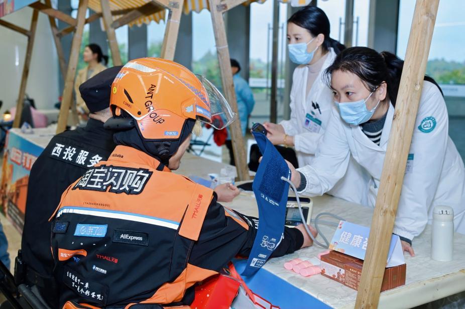 秋冬季節(jié)多發(fā)流感,全國(guó)各地、各級(jí)工會(huì)等主管部門(mén)聯(lián)合淘寶閃購(gòu),持續(xù)開(kāi)展暖冬物資發(fā)放、免費(fèi)體檢等活動(dòng)。在貴陽(yáng)、銀川、溫州、武漢等城市,騎士日活動(dòng)還設(shè)置了專門(mén)的體檢車(chē),為騎士提供便捷的健康檢查,在南京、成都等地開(kāi)展義診。
