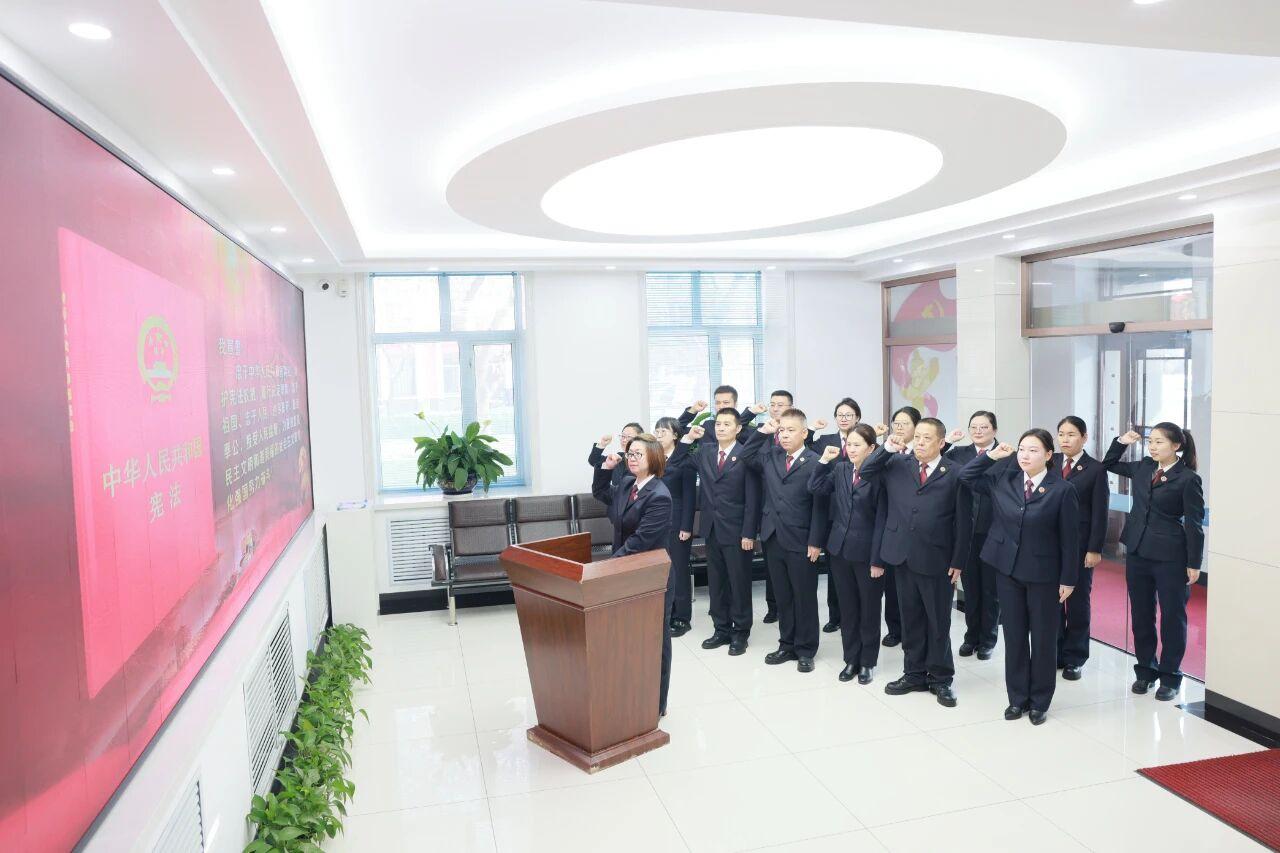 “我宣誓:忠于中華人民共和國(guó)憲法,維護(hù)憲法權(quán)威,履行法定職責(zé),忠于祖國(guó)、忠于人民……”在黨組書記、檢察長(zhǎng)趙麗葳帶領(lǐng)下,全體干警舉起右拳,目光堅(jiān)定,跟誦誓詞,鏗鏘有力的誓言,久久回響,激蕩人心。傳遞著檢察人員忠誠(chéng)履職盡責(zé)、維護(hù)公平正義的堅(jiān)毅決心,是初心使命的再宣誓,是接續(xù)奮斗的再出發(fā)。