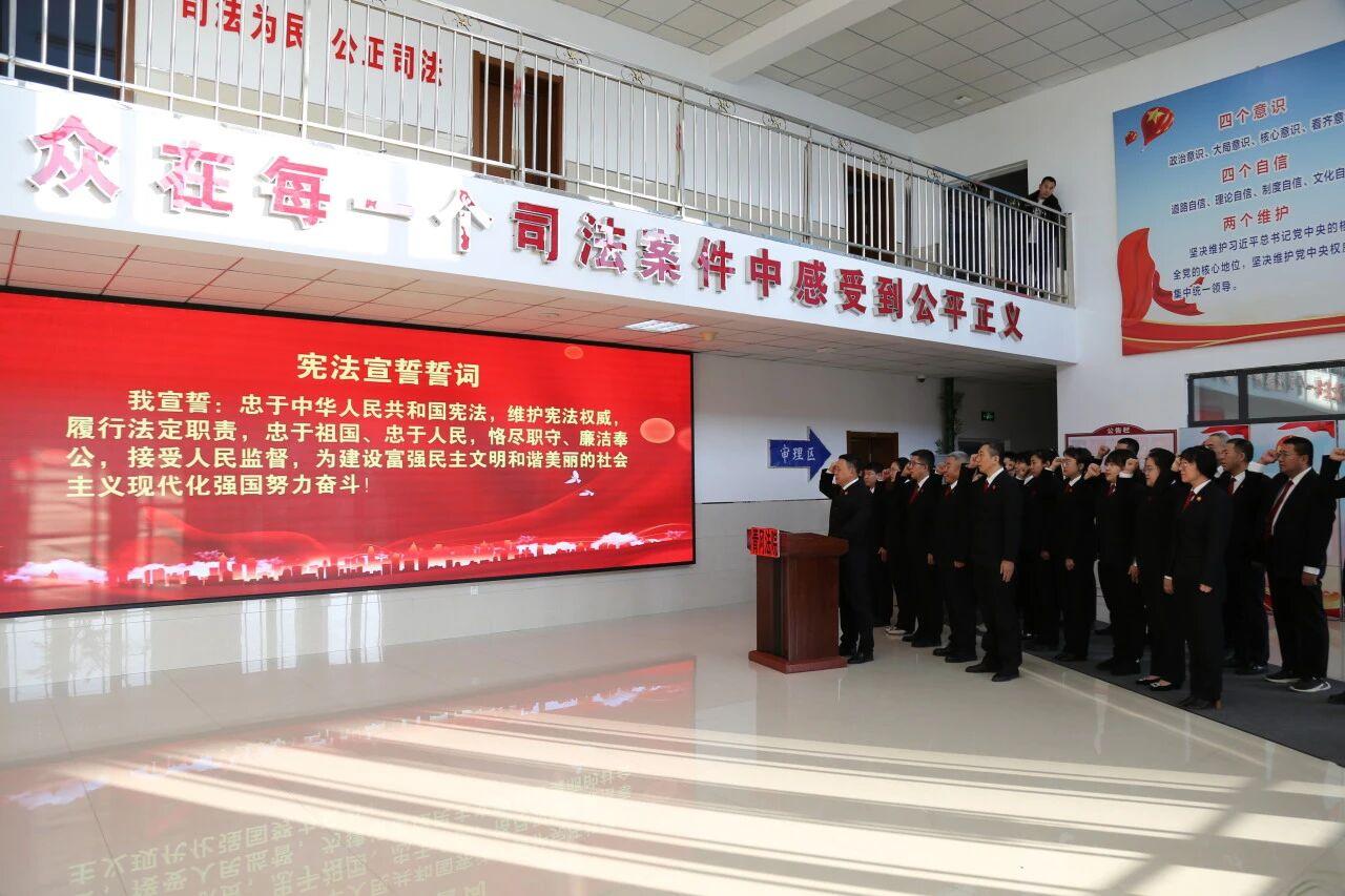孫長久院長左手撫按憲法,舉起右拳,高聲領(lǐng)誓,各位干警莊嚴(yán)宣誓——“我宣誓:忠于中華人民共和國憲法,維護(hù)憲法權(quán)威,履行法定職責(zé),忠于祖國、忠于人民,恪盡職守、廉潔奉公,接受人民監(jiān)督,為建設(shè)富強(qiáng)民主文明和諧美麗的社會主義現(xiàn)代化強(qiáng)國努力奮斗!”